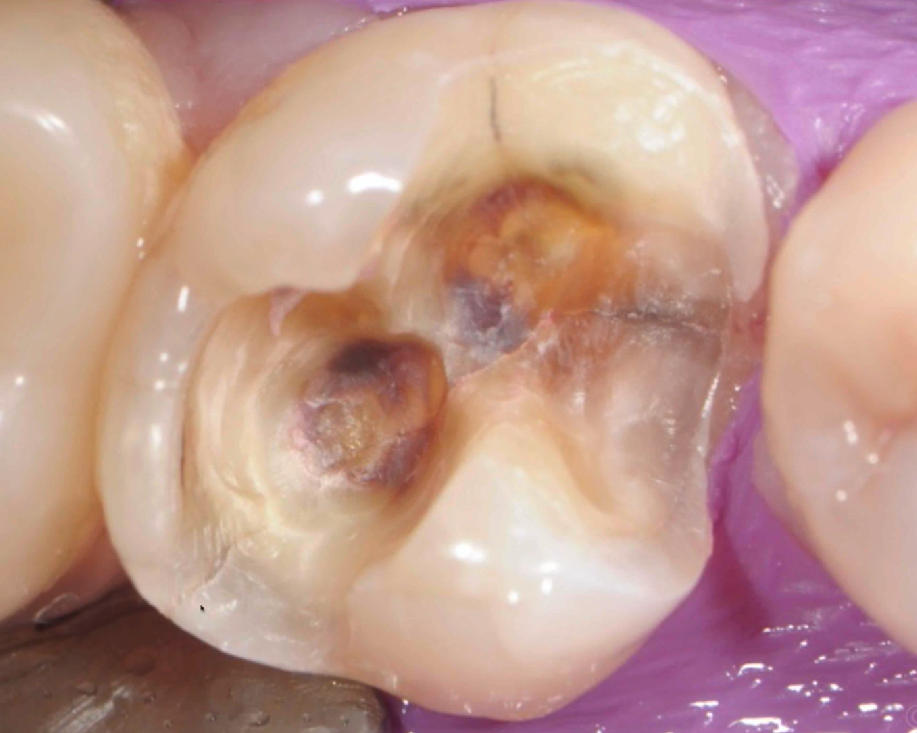 Take a look at the old silver filling in this picture. If you look carefully, you will see minor crack lines that go through the tooth from one end to the other. This tooth is breaking and this crack is running through the existing silver filling. However, there are absolutely no symptoms! Unfortunately, the implications of these crack indicate a high risk of breakage and extraction needed in the future. By seeing the crack lines early, we have an opportunity to save this tooth by placing a crown.