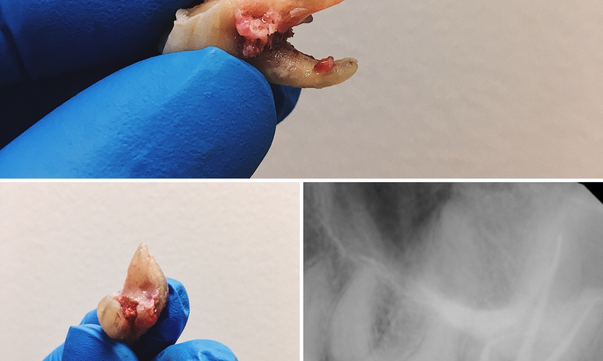 After a root canal, it is at MOST times crucial to have a crown. In this case, we lost the tooth due to a large fracture below the gum line. SAD! 😦