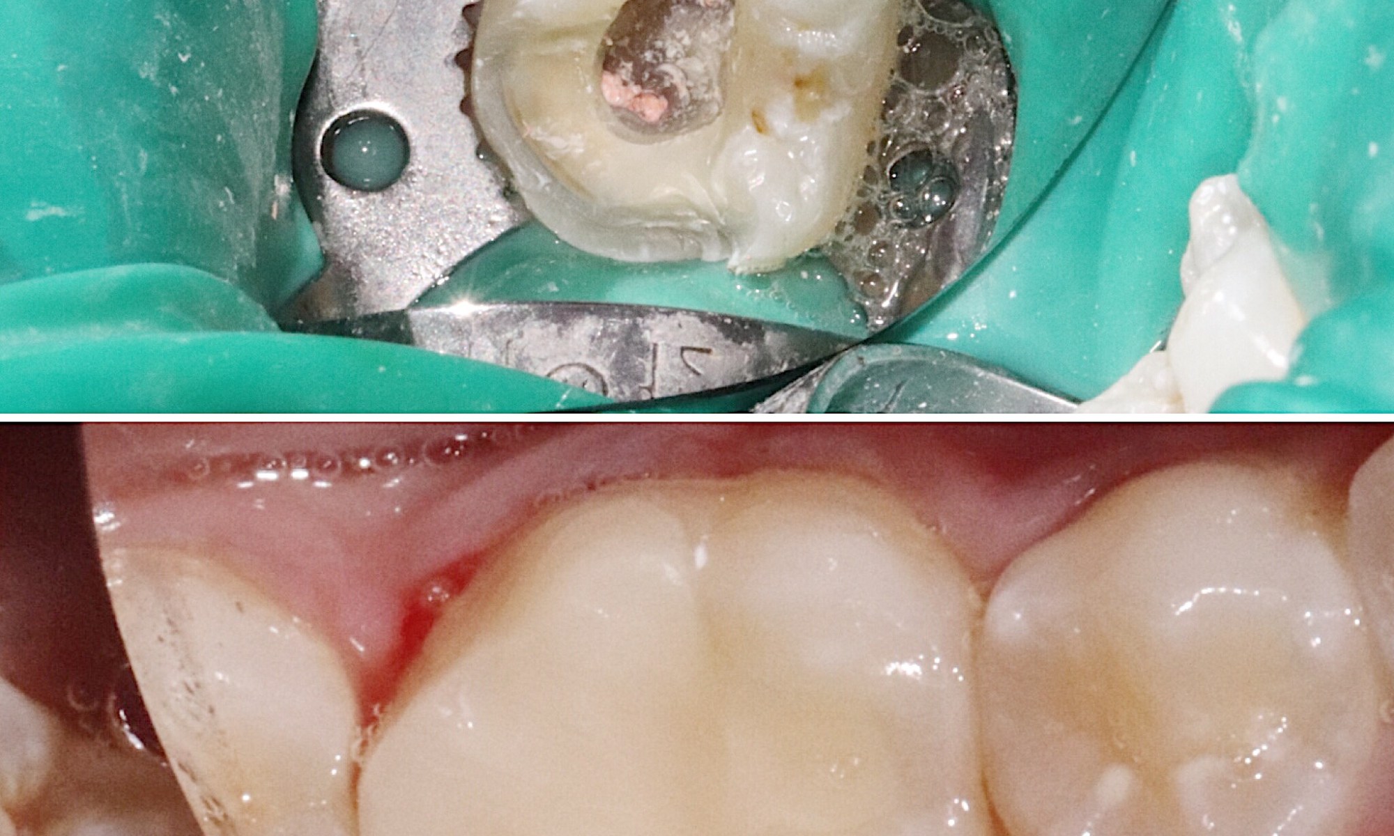 The first picture shows a tooth that just had a root canal. Notice how much tooth structure is left over. After a restoration is placed aka “core”, this tooth will need a crown for two reasons. Firstly, the amount of tooth structure left over makes it susceptible to potential fracture. Secondly, this tooth no longer has same blood supply which innately makes it very weak.